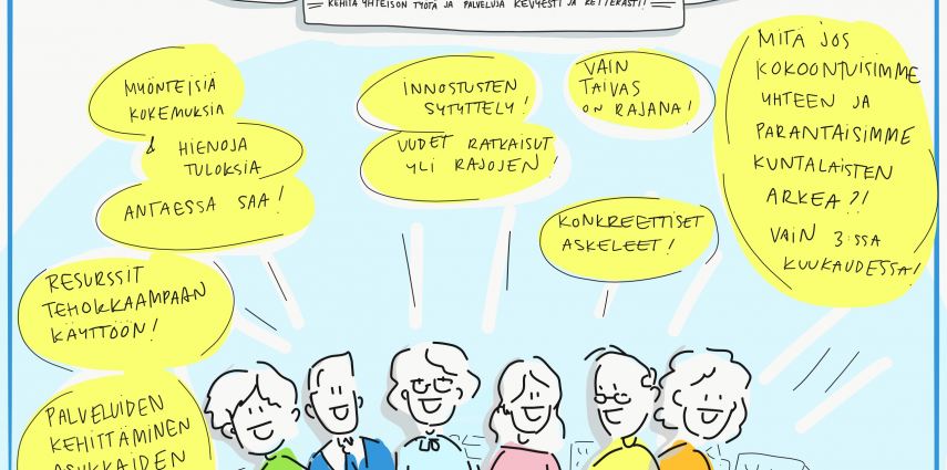 Yhteisöllisen innovoinnin -tuotteistushanke päätettiin eilen Kuntatalolla. Kuntaliiton ja Kirkkohallituksen yhteishanketta avusti Työsuojelurahasto ja toteuttajana oli Taite. Yhteisöllinen innovointi tarkoittaa työn ja palveluiden yhtäaikaista kehittämistä osallistavasti ja kokeillen. Tutustu mallin e-kirjaan täällä! Mallin käyttöönottoon ollaan keräämässä ryhmittymää, jolle haetaan Työsuojelurahaston kehittämisavustusta. Mukaan toivotaan monipuolisesti niin julkisen kuin yksityisen sektorin organisaatioita, joille suunnitellaan omien kehitämiskohtien pohjalta omat projektit. Jos mallin hyödyntäminen kiinnostaa, ota yhteyttä!